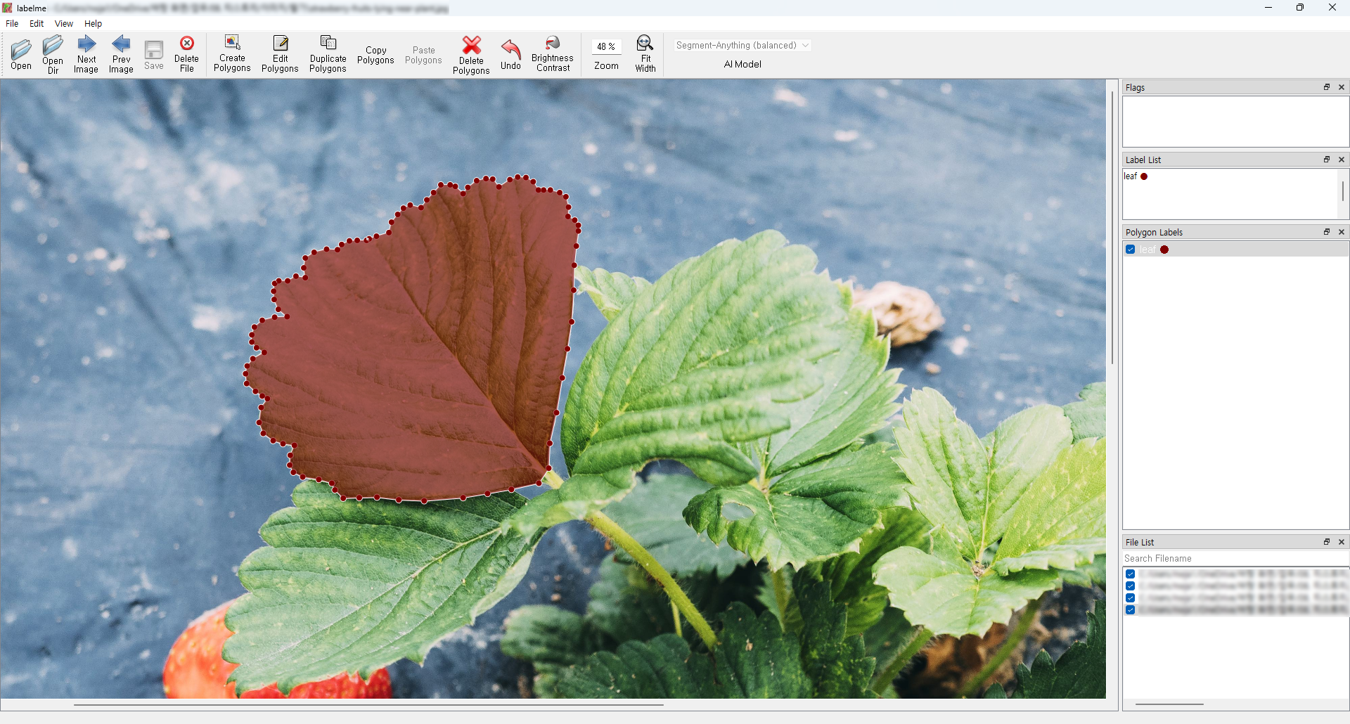 농작물 딸기 폴리곤 라벨링 작업 과정