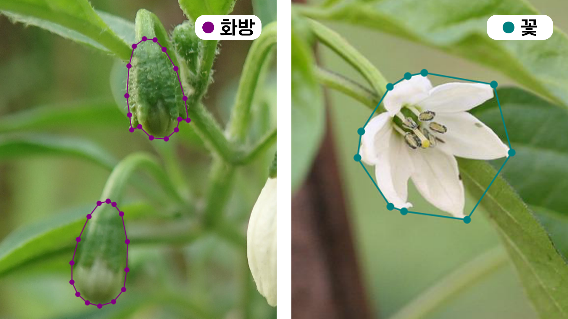 안녕하세요 비디와이드입니다. 이번 고추 라벨링은 본옆, 잎맥, 초장, 화방, 꽃 이렇게 5개의 클래스로 진행되었습니다. 1편 본옆, 잎맥에 이어 초장, 화방, 꽃 폴리곤 라벨링 예시도 참고해보시고 문의 부탁드립니다. 감사합니다.